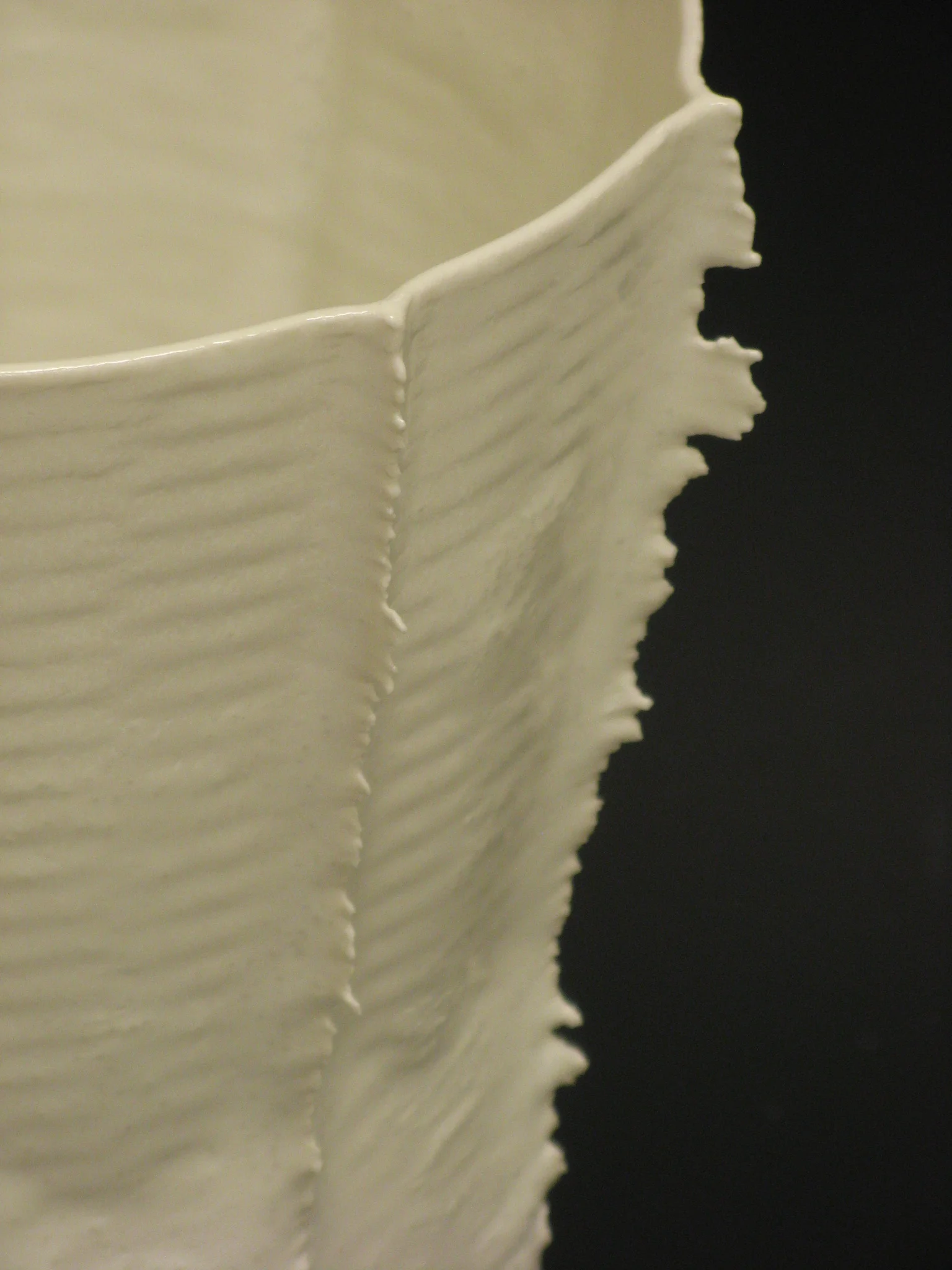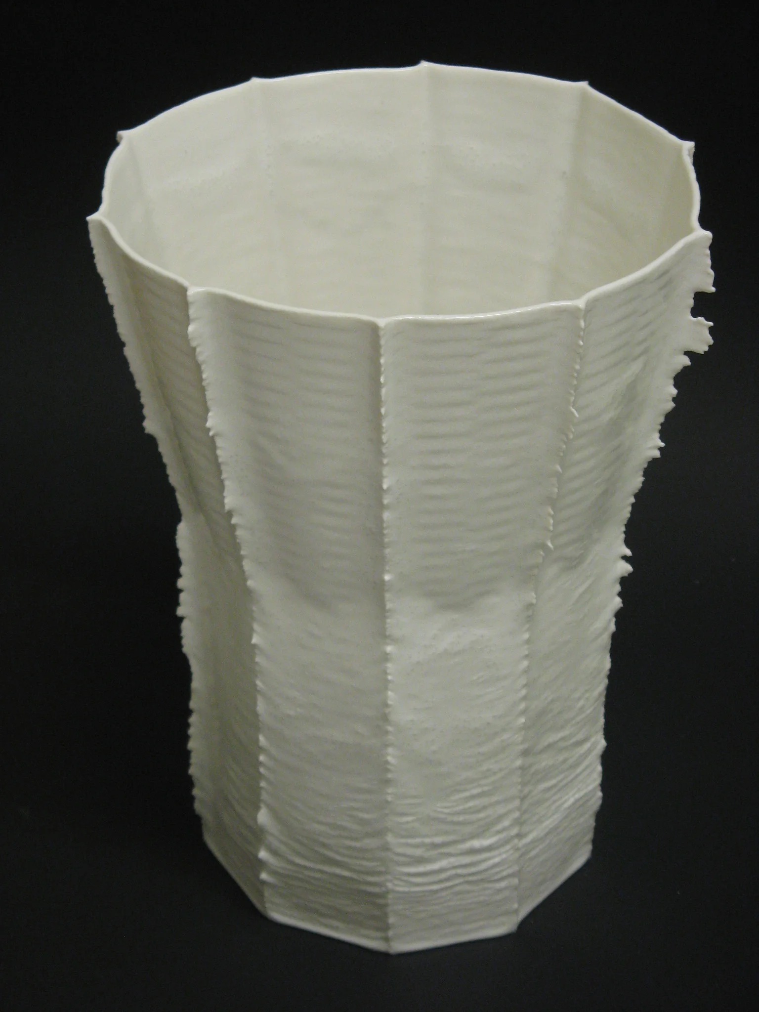 Rough Vase—Bricks #4 Series (2015) derives its form from the effect of liquid clay pushed in between the mold parts. these by products of the slip cast process are usually trimmed and removed.