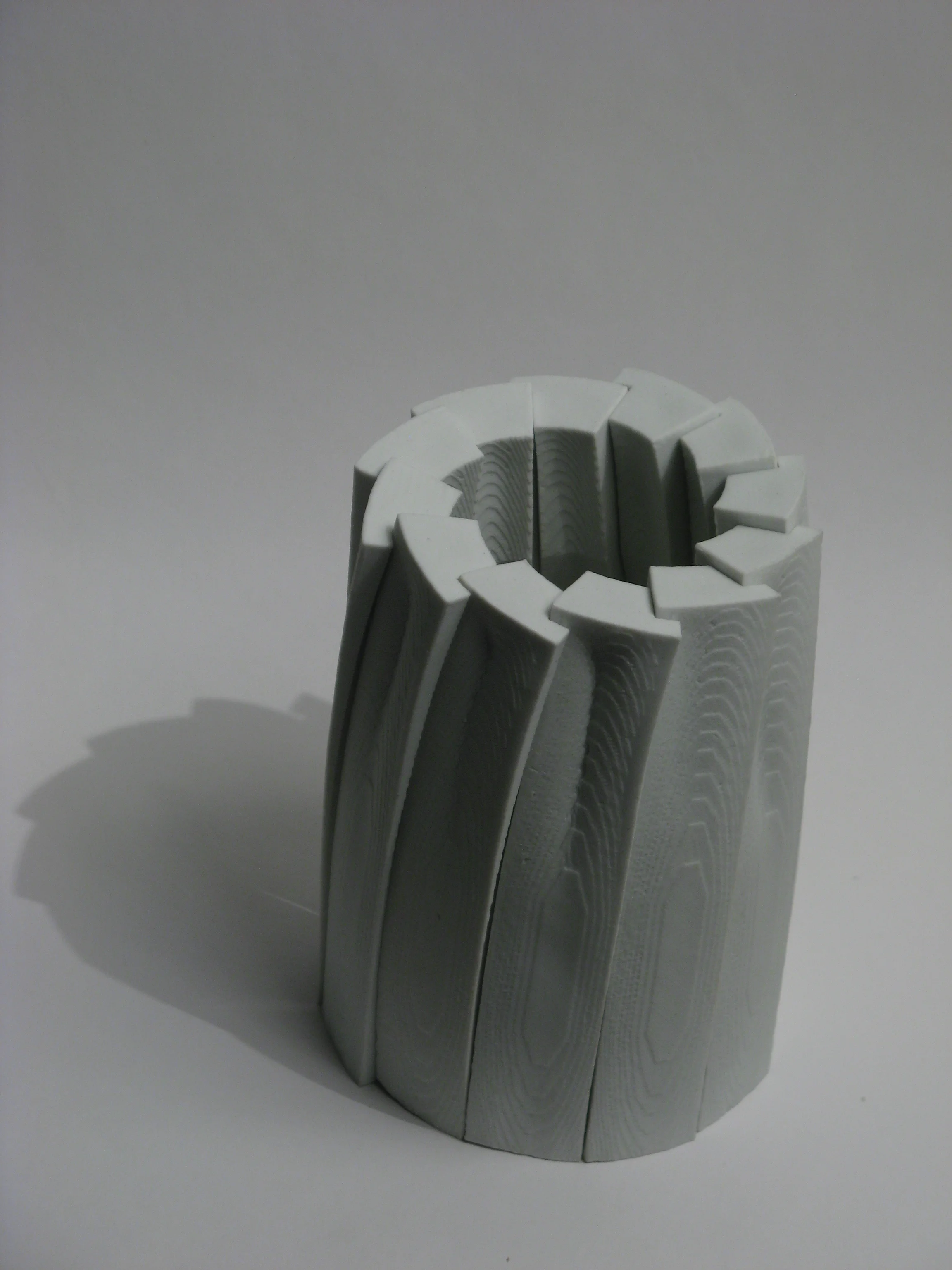 Like other projects of mine the mold creating these vases can be assembled in many different ways and is also used to create some other projects. It based on a generic contour of a vase that was digitally modeled, then sliced and then transferred to actual material using CNC milling.